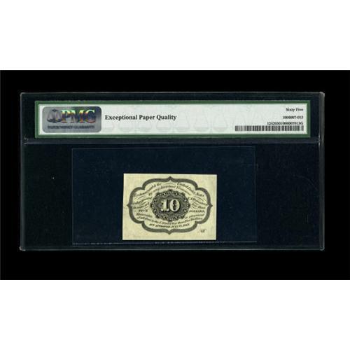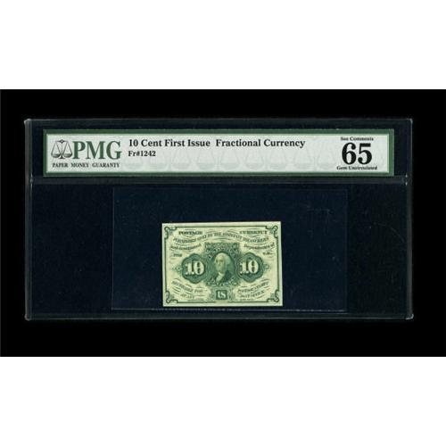 <B>Fr. 1242 10c First Issue PMG Gem Uncirculated 65 EPQ.</B></I> Nice margins envelop this well inked example in an elusive grade.<BR><BR><b>Shipping:</b> Coins & Currency (<a target="_blank" href="http://www.heritageauctions.com/common/shipping.php">view shipping information</a>)