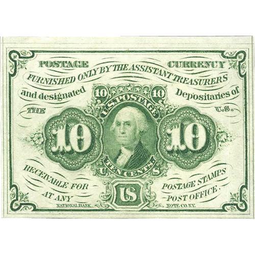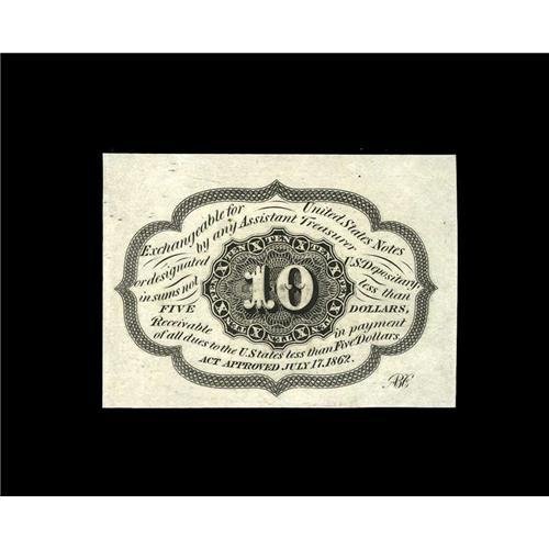<B>Fr. 1242 10c First Issue Superb Gem New.</B></I> This first issue was last sold in our 2003 Cincinnati sale, where we described as, "Clearly cut from an original sheet for the purpose of preserving broad, even margins. Virtually never available this nice. " We still concur with that earlier description.