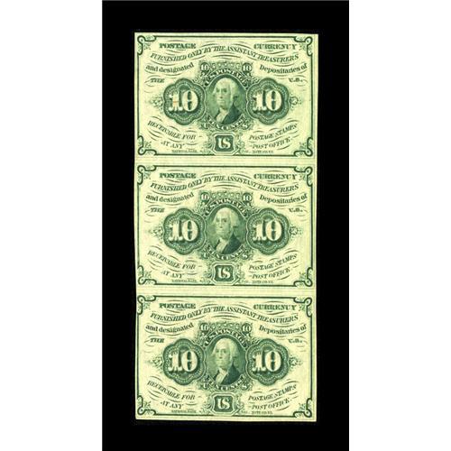 <B>Fr. 1242 10c First Issue Vertical Strip of Three Choice New.</B></I> This is a bright vertical strip of three that possesses originality.<BR><BR><b>Shipping:</b> Coin/Currency (<a target="_blank" href="http://www.heritageauctions.com/common/shipping.php">view shipping information</a>)
