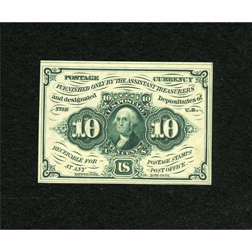 <B>Fr. 1242 10c First Issue Very Choice New.</B></I> Excellent face margins and deep embossing are found on this exceptional first issue note that needs a touch more left margin for the gem grade.<BR><BR><b>Shipping:</b> Coins & Currency (<a target="_blank" href="http://www.heritageauctions.com/common/shipping.php">view shipping information</a>)