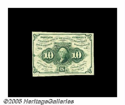 <B>Fr. 1242 Milton 1R10.4d 10¢ First Issue Inverted Back Choice New.</B></I> This is one of the more common Inverts, with about 20 examples known.