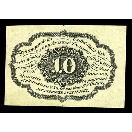 <B>Fr. 1243 10c First Issue Choice New.</B></I> A lovely example of this very scarce straight edge no monogram note. With just a hair more margins this piece, with its near perfectly centered back design, would be a full Gem.