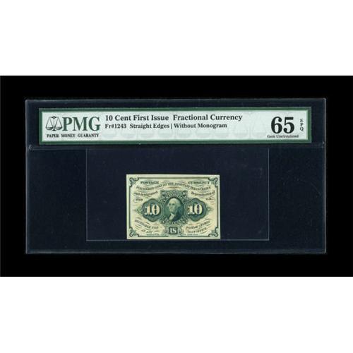 Fr. 1243 10c First Issue PMG Gem Uncirculated 65