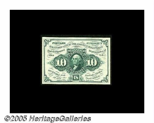 <B>Fr. 1243SP 10¢ First Issue Narrow Margin Pair Superb Gem New.</B></I> Milton 1S10F.1 and 1S10R.1. Apparently cut down from a wide-margin pair as the pieces are utterly perfect.