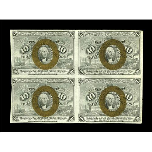 <B>Fr. 1244 10¢ Second Issue Block of Four Choice New.</B></I> Bold bronzing and a delightful back highlight this block of four that has a trivial edge nick at top center.
