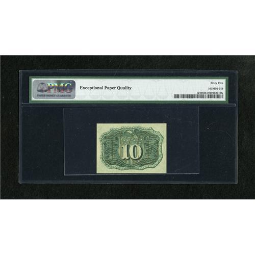 <B>Fr. 1244 10c Second Issue PMG Gem Uncirculated 65 EPQ.</B></I> Radiant ink colors and bright bronzing are found on this second issue type note that has razor sharp corners.<BR><BR><b>Shipping:</b> Coins & Currency (<a target="_blank" href="http://www.heritageauctions.com/common/shipping.php">view shipping information</a>)