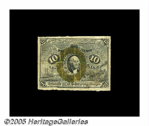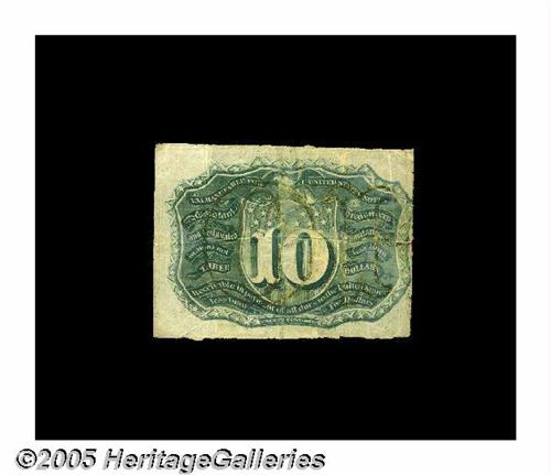 <B>Fr. 1244 Milton 2R10.1c 10¢ Second Issue Inverted Back Surcharge Fine.</B></I> One of only three examples known to us. A 1914 Chapman catalog listed a full sheet of 20 but ninety years later the sheet has yet to resurface and is generally presumed to be a mislisting.