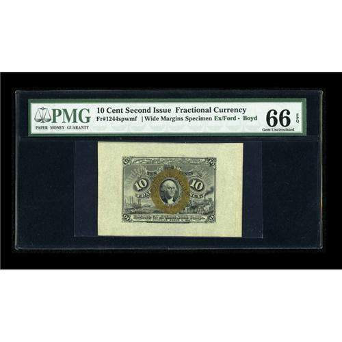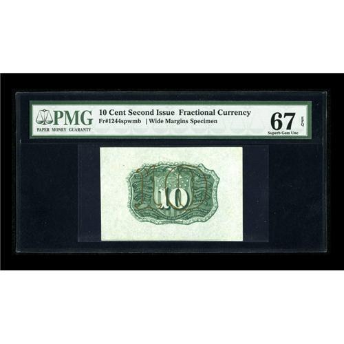 <B>Fr. 1244SP 10¢ Second Issue Wide Margin Pair PMG Superb Gem Unc 67 EPQ/66 EPQ.</B></I> The face has earned the 66 grade and the Superb back 67. Each has the important EPQ qualifier, and both are fully wide and most attractive.<BR><BR><b>Shipping:</b> Coins & Currency (<a target="_blank" href="http://www.heritageauctions.com/common/shipping.php">view shipping information</a>)