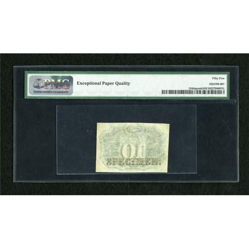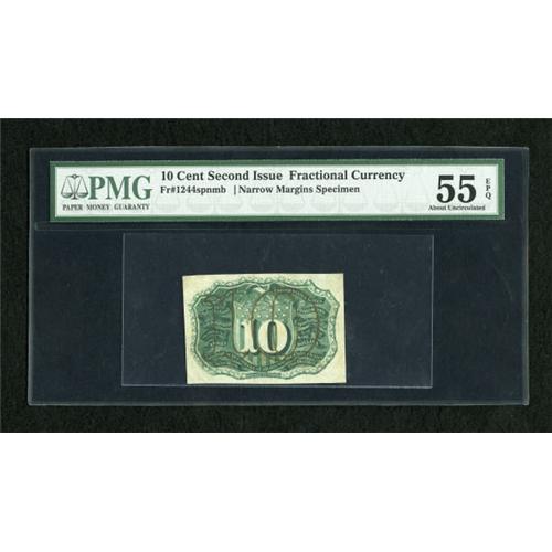 <B>Fr. 1244SP 10c Second Issue Narrow Margin Back PMG About Uncirculated 55 EPQ.</B></I> An infrequently encountered centerfold is seen on this bright and colorful Narrow Margin Back Specimen.<BR><BR><b>Shipping:</b> Coins & Currency (<a target="_blank" href="http://www.heritageauctions.com/common/shipping.php">view shipping information</a>)
