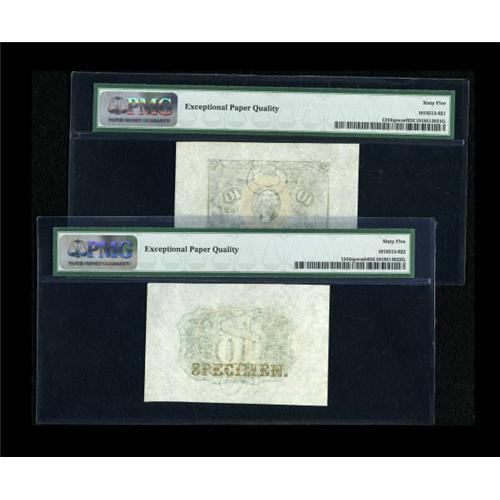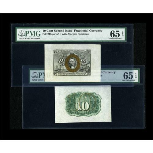 <B>Fr. 1244SP 10c Second Issue Wide Margin Pair PMG Gem Uncirculated 65 EPQ.</B></I> This well matched pair looks deserving of the EPQ designation assigned as the inks are bold and surfaces pristine.<BR><BR><b>Shipping:</b> Coins & Currency (<a target="_blank" href="http://www.heritageauctions.com/common/shipping.php">view shipping information</a>)