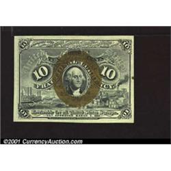 Fr. 1245 10c Second Issue Gem New.<p>Broadly margined, beautifully bright and extremely well centered on both sides, this is a note that years ago would have brought a serious premium as a "63"-only variety. The "18" bronze corner surcharge is only present as a tiny trace. These had once been listed as an important separate variety, but they are now recognized for the minor Errors that they truly are. Regardless, this is one terrific 10c Second Issue note. Important notice: We expect to be auctioning lots at the rate of 200-250 per hour. Sometimes eBay Premier live bid software cannot keep up with that pace, so we strongly recommend that you place a realistic proxy bid now as insurance to avoid disappointment. Also please note that all Heritage/CAA lots purchased through eBay Premier carry a 20% Buyer's Premium.