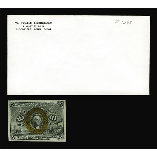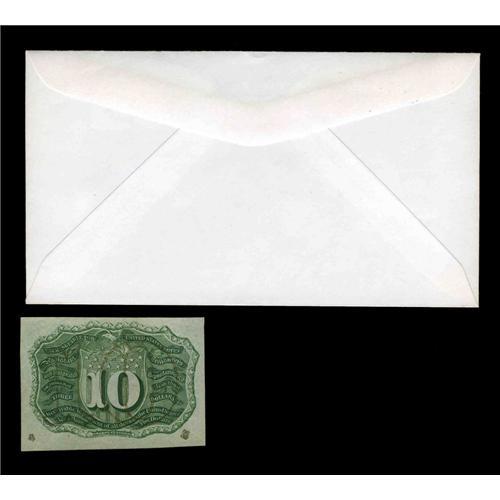 <B>Fr. 1245 10c Second Issue Very Choice New.</B></I> The bottom left margin though clear of the frame line is awkwardly cut. The surfaces are pristine and the note is accompanied by an envelope which is priced at $1200.