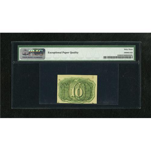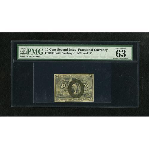 <B>Fr. 1246 10c Second Issue PMG Choice Uncirculated 63EPQ.</B></I> Bright paper and bold surcharges are found on this scarcer "S-18-63" surcharge note.<BR><BR><b>Shipping:</b> Coins & Currency (<a target="_blank" href="http://www.heritageauctions.com/common/shipping.php">view shipping information</a>)