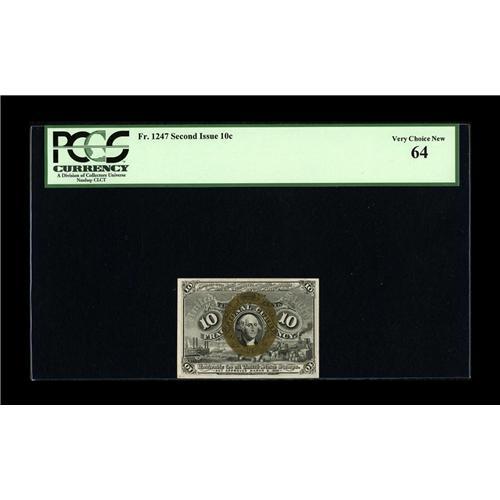 <B>Fr. 1247 10¢ Second Issue PCGS Very Choice New 64.</B></I> A real sleeper number, and this example is oh so close to the full Gem grade.<BR><I>From The Bill and Kathy Stella Currency Collection</B></I><BR><BR><b>Shipping:</b> Coin/Currency (<a target="_blank" href="http://www.heritageauctions.com/common/shipping.php">view shipping information</a>)