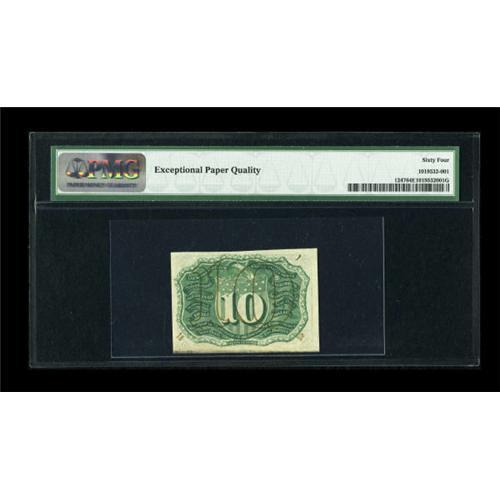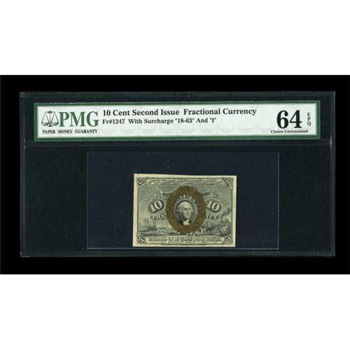 <B>Fr. 1247 10c Second Issue PMG Choice Uncirculated 64 EPQ.</B></I> A real sleeper number, and this example is oh so close to the full gem grade. Wonderful margins and bright overprints should cause this note to be hotly contested.<BR><BR><b>Shipping:</b> Coins & Currency (<a target="_blank" href="http://www.heritageauctions.com/common/shipping.php">view shipping information</a>)