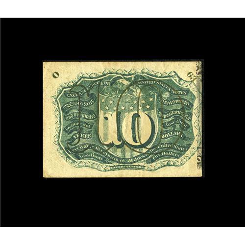 <B>Fr. 1248 10c Second Issue Extremely Fine.</B></I> A quick glance at the Heritage Auction Archives reveals that the few examples of this Friedberg number exhibit nice margins. This piece with two tight margins is as nice as the few that we've handled, but the paper quality is surely better. On back, a partial offset from the face printing is noted, adding to the appeal of the issue. A couple of folds and some handling account for the grade on this issue.<BR><BR><b>Shipping:</b> Coin/Currency (<a target="_blank" href="http://www.heritageauctions.com/common/shipping.php">view shipping information</a>)