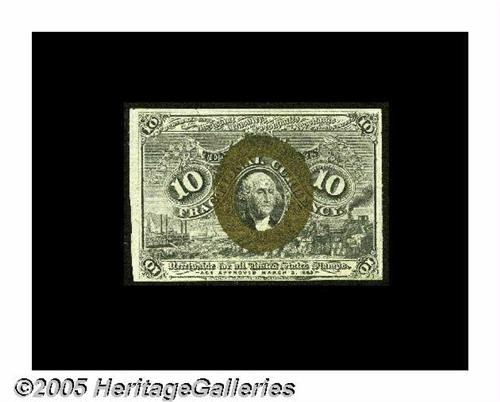 <B>Fr. 1249 10¢ Second Issue Choice New.</B></I> A fresh and original fiber paper note that is a real challenge to locate this nice. This example has three ample and one close margin and but for the centering issue would be a Gem.