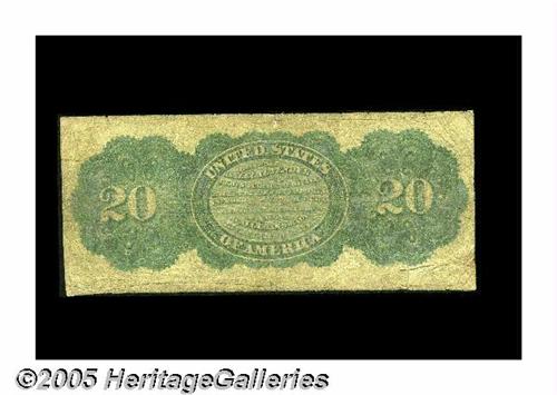 <B>Fr. 125 $20 1862 Legal Tender Very Good-Fine.</B></I> Heavily circulated, but totally problem-free save for the most minor of edge nicks.