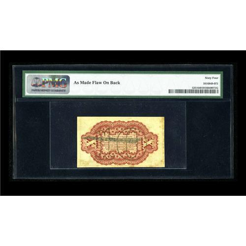 <B>Fr. 1251 10¢ Third Issue PMG Choice Uncirculated 64.</B></I> PMG has added the comment, "As Made Flaw On Back." It's a bit hard to tell through the holder what this is, but it's large, quite noticeable, and it turns this Ten Cent Red Back into a rather interesting Error Note.<BR><BR><b>Shipping:</b> Coins & Currency (<a target="_blank" href="http://www.heritageauctions.com/common/shipping.php">view shipping information</a>)
