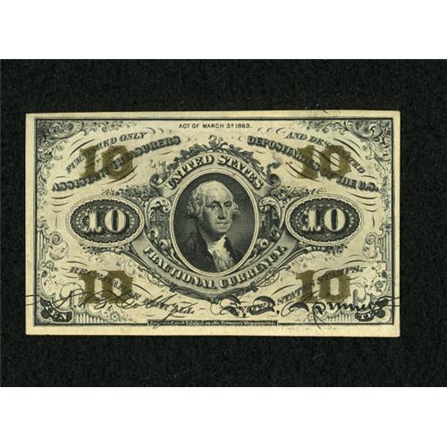 <B>Fr. 1251 10c Third Issue Choice About New.</B></I> A light fold to the far left is all that keeps this bright and colorful red back from a near gem grade.<BR><BR><b>Shipping:</b> Coins & Currency (<a target="_blank" href="http://www.heritageauctions.com/common/shipping.php">view shipping information</a>)