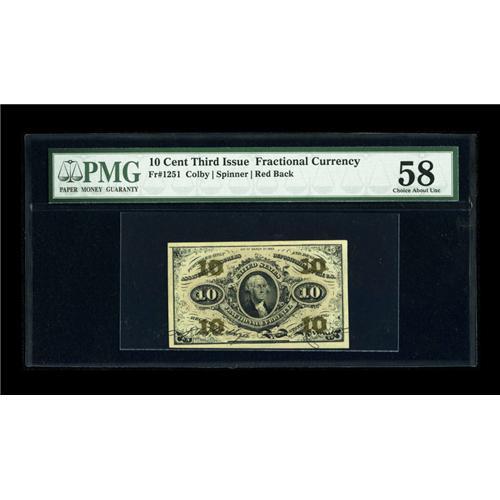 <B>Fr. 1251 10c Third Issue PMG Choice About Unc 58.</B></I> Nice margins surround this pretty red back.<BR><BR><b>Shipping:</b> Coins & Currency (<a target="_blank" href="http://www.heritageauctions.com/common/shipping.php">view shipping information</a>)