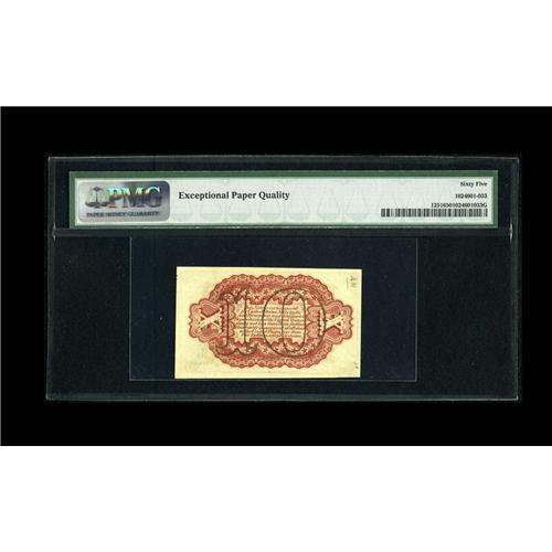 48B. CURRENCY – Notes sold referencing a third-party grading service are sold "as is" without any express or implied warranty, except for a guarantee by Auctioneer that they are genuine. Grading, condition or other attributes of any lot may have a material effect on its value, and the opinion of others, including independent grading services such as PCGS Currency, PMG, and CGA may differ with that of Auctioneer. Auctioneer shall not be bound by any prior or subsequent opinion, determination, or certification by any independent grading service. The grades assigned by any grading service to any note offered in any Heritage Currency Auctions of America sale represent the opinion of that grading service only,and may differ in material respects from the grade assigned to the same note in previous sales by HCAA or other auction companies, or from the grade that would be assigned by any other grading service. HCAA is unable to view any third party graded item outside of the holder, and specifically disclaims any liability of any kind to bidders who bid on third party graded items for mistakes of commission or omission by any grading service. Bidders are hereby notified that currency grading standards have changed in the past and are subject to change in the future, and that the only remedy bidder has with respect to third party graded notes is to deal directly with the grading service certifying the item. Bidders are also advised that Auctioneer makes no representation or guarantee that any item obtained by Bidder will be assigned any particular grade by any particular grading service, and as noted herein, Bidder specifically waives any claim to right of return of any item because of the opinion, determination, or certification, or lack thereof, by any independent grading service. Certain warranties may be available from the grading services and the Bidder is referred to them for further details: Paper Money Guaranty (PMG), PO Box 4711, Sarasota FL 34230; PCGS Currency, PO Box 9458, Newport Beach, CA 92658; Currency Grading & Authentication (CGA), PO Box 418, Three Bridges, NJ 08887.