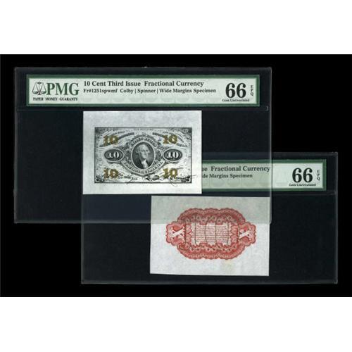 <B>Fr. 1251/54SP 10c Third Issue Wide Margin Pair PMG Gem Uncirculated 66 EPQ.</B></I> Both the face and red back of this pair have earned the coveted "EPQ" designation with each receiving the 66 grade. With Wide Margin specimens a high-demand segment of the fractional market we would fully expect the four-figure price threshold to be surpassed.<BR><BR><b>Shipping:</b> Coins & Currency (<a target="_blank" href="http://www.heritageauctions.com/common/shipping.php">view shipping information</a>)