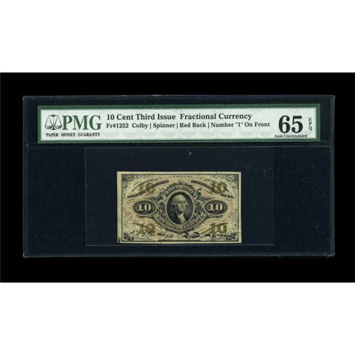 Fr. 1252 10c Third Issue PMG Gem Uncirculated 65
