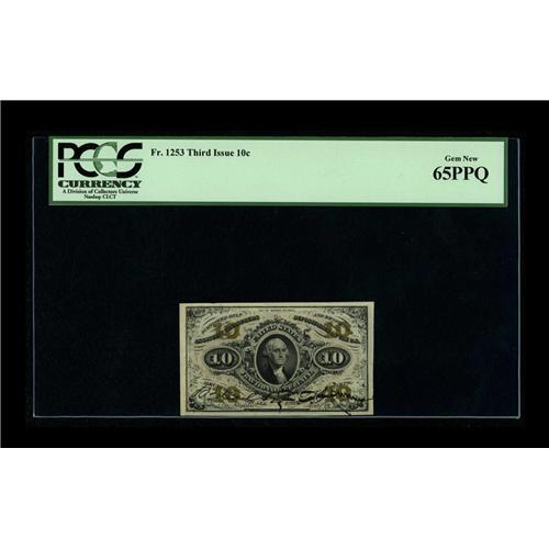 Fr. 1253 10¢ Third Issue PCGS Gem New 65PPQ. The last m