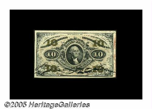 <B>Fr. 1253 10¢ Third Issue Superb Gem New.</B></I> A hugely margined, boldly signed, red back 10¢ with super color and deep original embossing. It's just about as nice an example as we have ever seen. A premium piece.