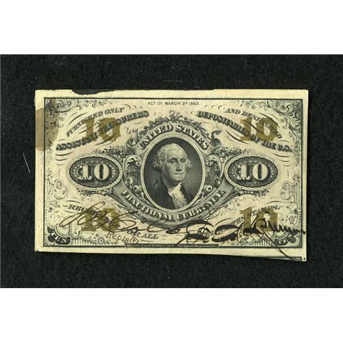 <B>Fr. 1253 10c Third Issue New.</B></I> This hand signed Colby-Spinner note is an enormously margined and wonderfully embossed Gem that unfortunately has an stain in the upper left corner.<BR><BR><b>Shipping:</b> Coins & Currency (<a target="_blank" href="http://www.heritageauctions.com/common/shipping.php">view shipping information</a>)