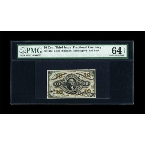 <B>Fr. 1253 10c Third Issue PMG Choice Uncirculated 64 EPQ.</B></I> A little wider face margin at left is the only hindrance on this deeply signed example.<BR><BR><b>Shipping:</b> Coins & Currency (<a target="_blank" href="http://www.heritageauctions.com/common/shipping.php">view shipping information</a>)