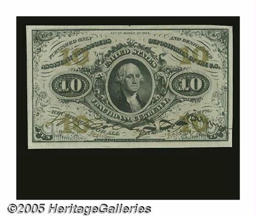 <B>Fr. 1253 Milton 3R10.1 10¢ Third Issue Gem New.</B></I> The margins are not perfectly even, but they are more than broad enough for the grade, and the colors, signatures and bronze are all virtually perfect. An extremely nice, strictly original hand-signed Red Back.