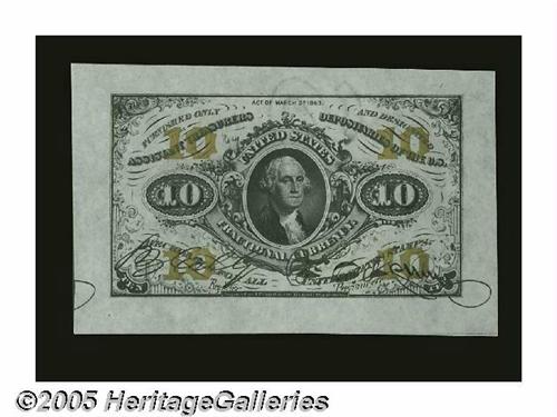 <B>Fr. 1253SP 10¢ Third Issue Wide Margin Pair Superb Gem New.</B></I> Milton 3P10F.1, 3P10R.1a. A gorgeous pair, with both the face and back having their full, original embossing, The hand signatures are bold, and the bronze on both pieces is beautifully bright.