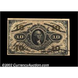 Fr. 1254 10ó Third Issue Choice New. This much scarcer Jeffries-Spinner hand-signed note has excellent centering of both sides, good paper originality and good ink and bronze color. Were it not for light paper aging, this note would be an absolute Gem. Important notice: We expect to be auctioning lots at the rate of 200-250 per hour. Sometimes eBay Premier live bid software cannot keep up with that pace, so we strongly recommend that you place a realistic proxy bid now as insurance to avoid disappointment. Also please note that all Heritage/CAA lots purchased through eBay Premier carry a 20% Buyer's Premium. Please make sure you read the Terms and Conditions.
