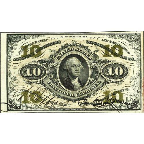 <B>Fr. 1254 10c Third Issue Choice New.</B></I> A delightful Red Back note with the autographs of Jeffries and Spinner. A tougher note than many imagine with far fewer in number than Fr. 1253.