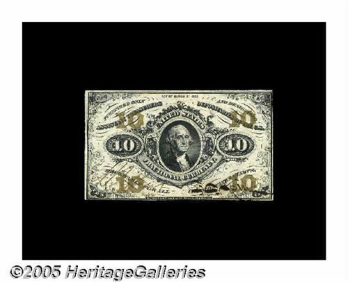 <B>Fr. 1254SP 10¢ Third Issue Narrow Margin Pair Very Choice New.</B></I> Milton 3S10F.3 and Milton 3S10R.1a. This is the scarcer Jeffries-Spinner signed face. Both the face and the back have been removed from shields with virtually no traces remaining and the notes are far nicer than normal.