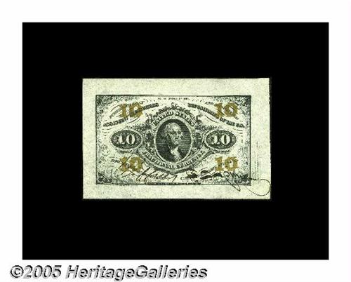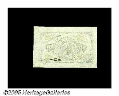 <B>Fr. 1254SP 10¢ Third Issue Wide Margin Face Very Choice New.</B></I> This is one of the finest of the very few known Fr. 1254 Wide Margin Specimens that we have ever seen. It's fully uncirculated, with bold, original embossing, broad margins and strong signatures that have not even a hint of a crack. The bronze is fully bright, as are the paper and the inks. Wayne Liechty did not have a Fr. 1254SP, and the Milt Friedberg example was a nice <B>About New.</B></I> Most of today's active collectors have not had the opportunity to purchase a truly nice Fr. 1254SP, and this one should garner considerable attention. Rob Kravitz's excellent book states, "Very rare: eight known [for this number]." We can trace only five, which we believe to be accurate.