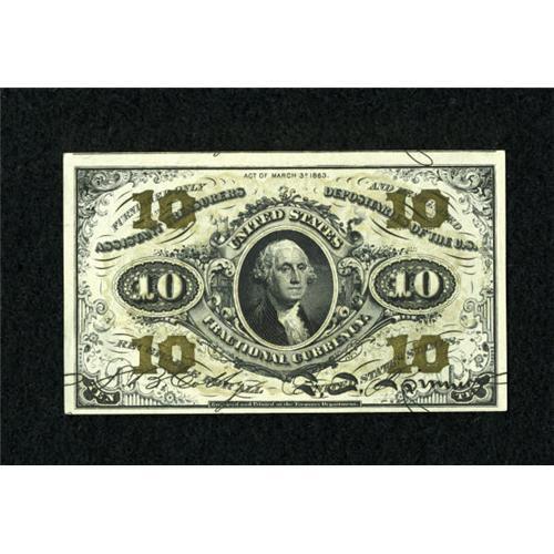 <B>Fr. 1255 10c Third Issue Gem New.</B></I> Bright bronze overprints are noticed on this nicely margined example with strong embossing.<BR><BR><b>Shipping:</b> Coins & Currency (<a target="_blank" href="http://www.heritageauctions.com/common/shipping.php">view shipping information</a>)