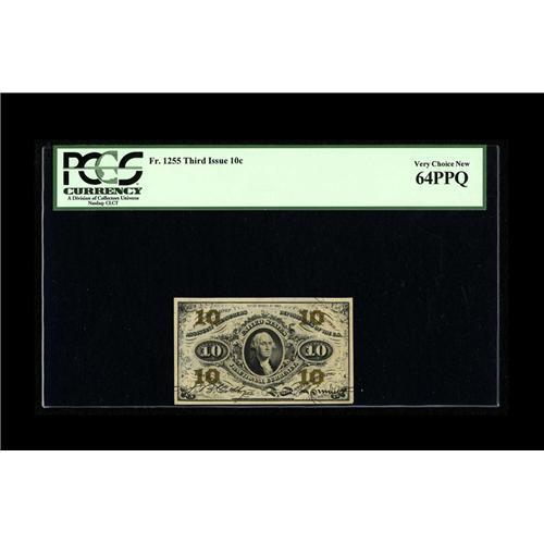 <B>Fr. 1255 10c Third Issue PCGS Very Choice New 64PPQ.</B></I> Wide margins and a reflective bronze overprint are merits of this note.