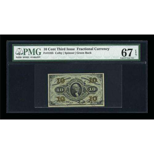 <B>Fr. 1255 10c Third Issue PMG Superb Gem Unc 67 EPQ.</B></I> Oversized margins for the issue framed this perfectly printed and wholly original piece.<BR><BR><b>Shipping:</b> Coins & Currency (<a target="_blank" href="http://www.heritageauctions.com/common/shipping.php">view shipping information</a>)