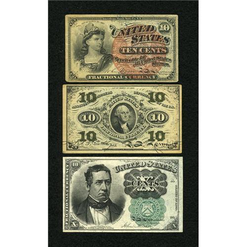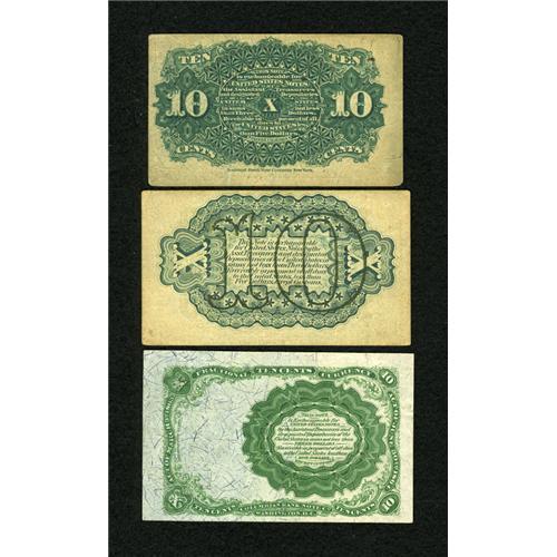 <B>Fr. 1255 10c Third Issue XF, toned<BR>Fr. 1261 10c Fine, toned<BR>Fr. 1264 10c AU.</B></I><BR> <BR><BR><b>Shipping:</b> Coins & Currency (<a target="_blank" href="http://www.heritageauctions.com/common/shipping.php">view shipping information</a>)