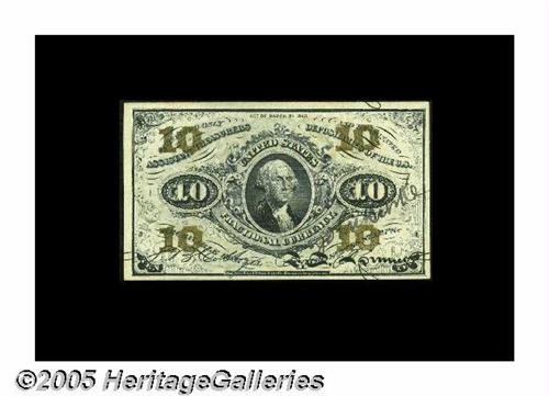 <B>Fr. 1255 Milton 3R10.6k 10¢ Third Issue Courtesy Autograph Gem New.</B></I> Identical to the previous lot except for the placement of the Burke signature, which on this note, appears at the right over Spinner's engraved signature.
