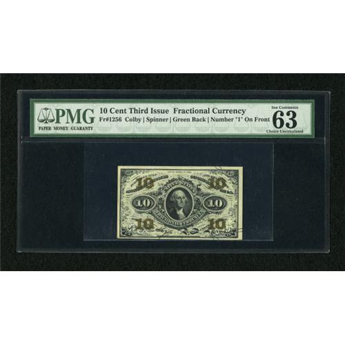 <B>Fr. 1256 10c Third Issue PMG Choice Uncirculated 63 EPQ.</B></I> A nice, clean example that possesses a partial plate number at lower right.<BR><BR><b>Shipping:</b> Coins & Currency (<a target="_blank" href="http://www.heritageauctions.com/common/shipping.php">view shipping information</a>)