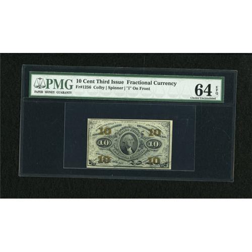<B>Fr. 1256 10c Third Issue PMG Choice Uncirculated 64 EPQ.</B></I> High grade examples of this tougher number are much harder to come by than for its Fr. 1255 cousin.<BR><BR><b>Shipping:</b> Coins & Currency (<a target="_blank" href="http://www.heritageauctions.com/common/shipping.php">view shipping information</a>)