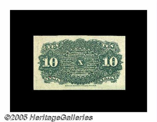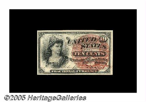 <B>Fr. 1257 Milton 4R10.1d 10¢ Fourth Issue Courtesy Autograph Gem New.</B></I> The bright red autograph of Carmi Thompson appears at the lower right above the engraved signatures. A very pretty Courtesy Autograph on a truly Gem note.