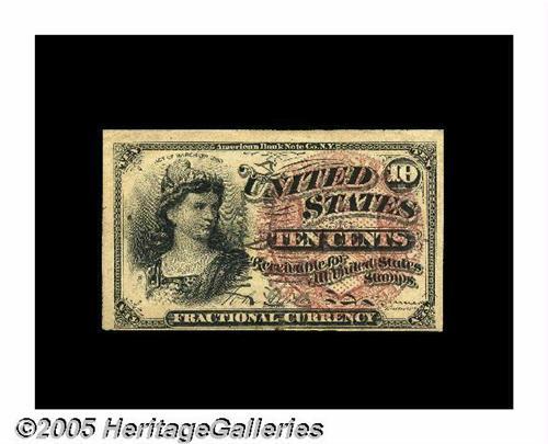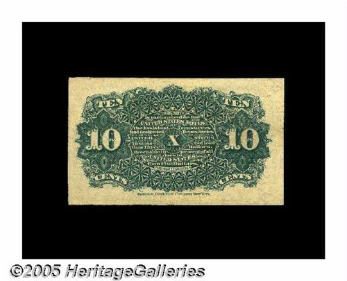 <B>Fr. 1257 Milton 4R10.1h 10¢ Fourth Issue Courtesy Autograph About New.</B></I> Signed vertically to the right of the vignette, "AUWyman - Treas. US," along with his dates of service.