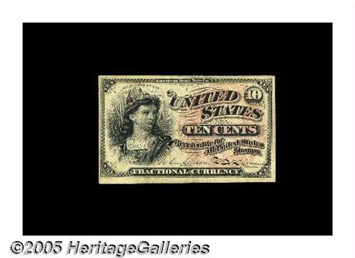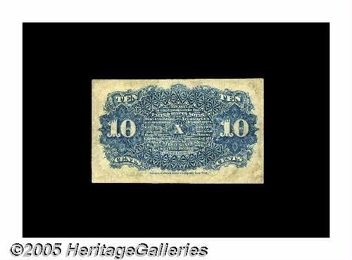 <B>Fr. 1258 10¢ Fourth Issue About New.</B></I> A chemically altered note, with the seal extremely light and the green back rather blue.