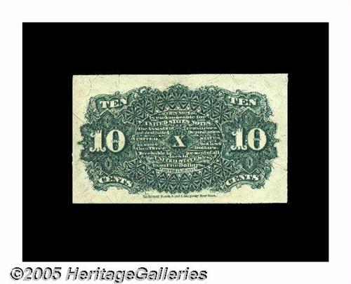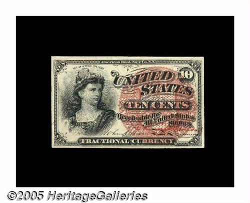 <B>Fr. 1258 Milton 4R10.2d 10¢ Fourth Issue Courtesy Autograph Superb Gem New.</B></I> The bright red autograph of Carmi Thompson appears at the bottom right over the engraved signature of F.E. Spinner. A good-looking autograph on an absolutely top-grade note.