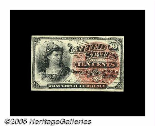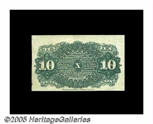 <B>Fr. 1258 Milton 4R10.3c 10¢ Fourth Issue Courtesy Autograph Choice New.</B></I> The light grey signature of John Burke appears above Spinner's engraved signature.